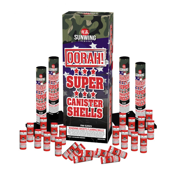 Hard-hitting 5″ canister shells with big booming breaks. This kit features a wide variety of effects, including brocade crowns, colorful waves, strobes, crackle, and dahlia bursts, delivering bold color and powerful impact with every launch.